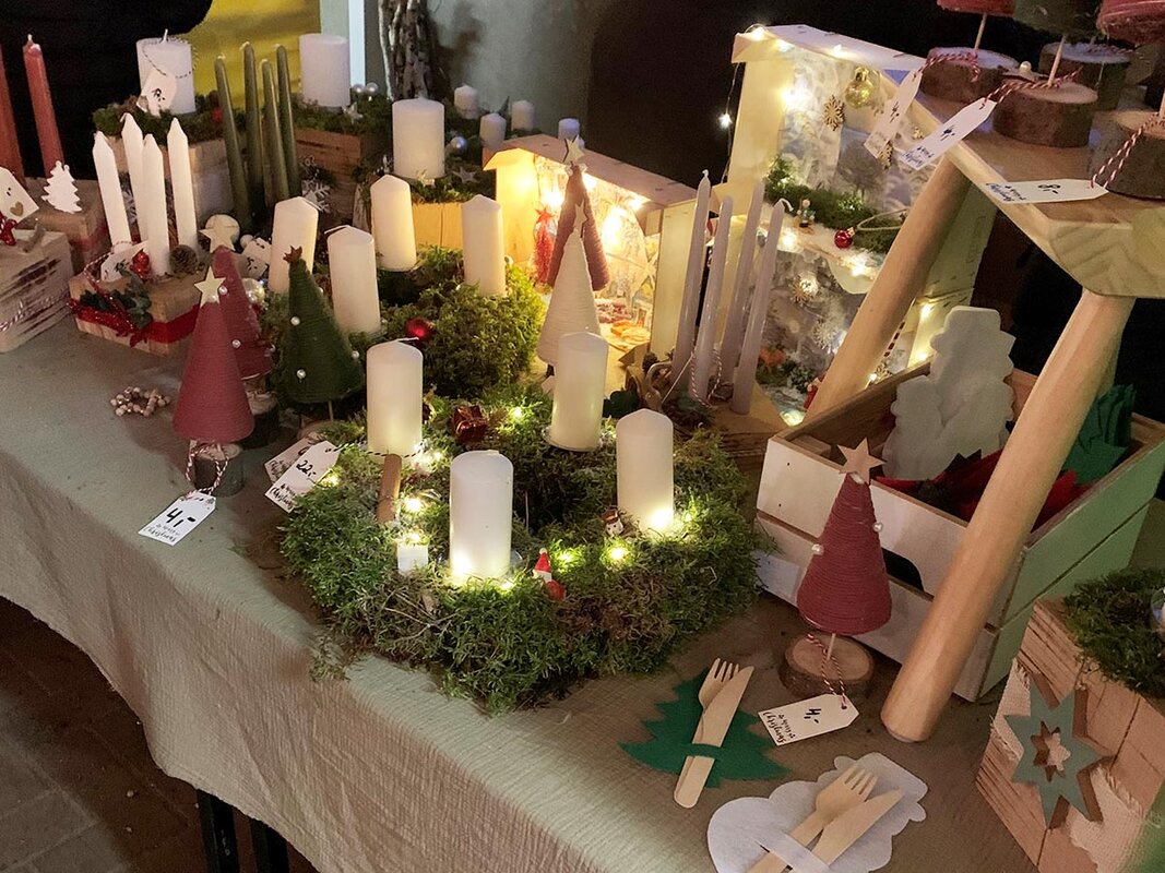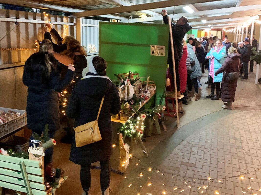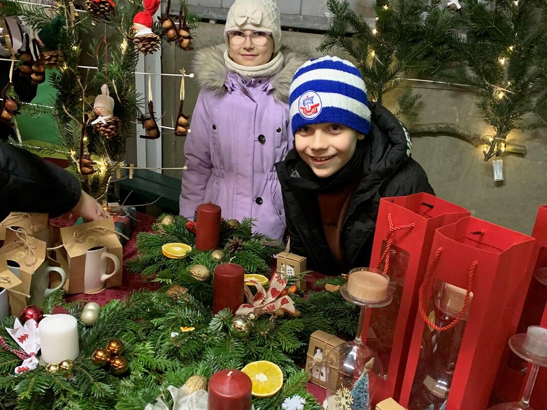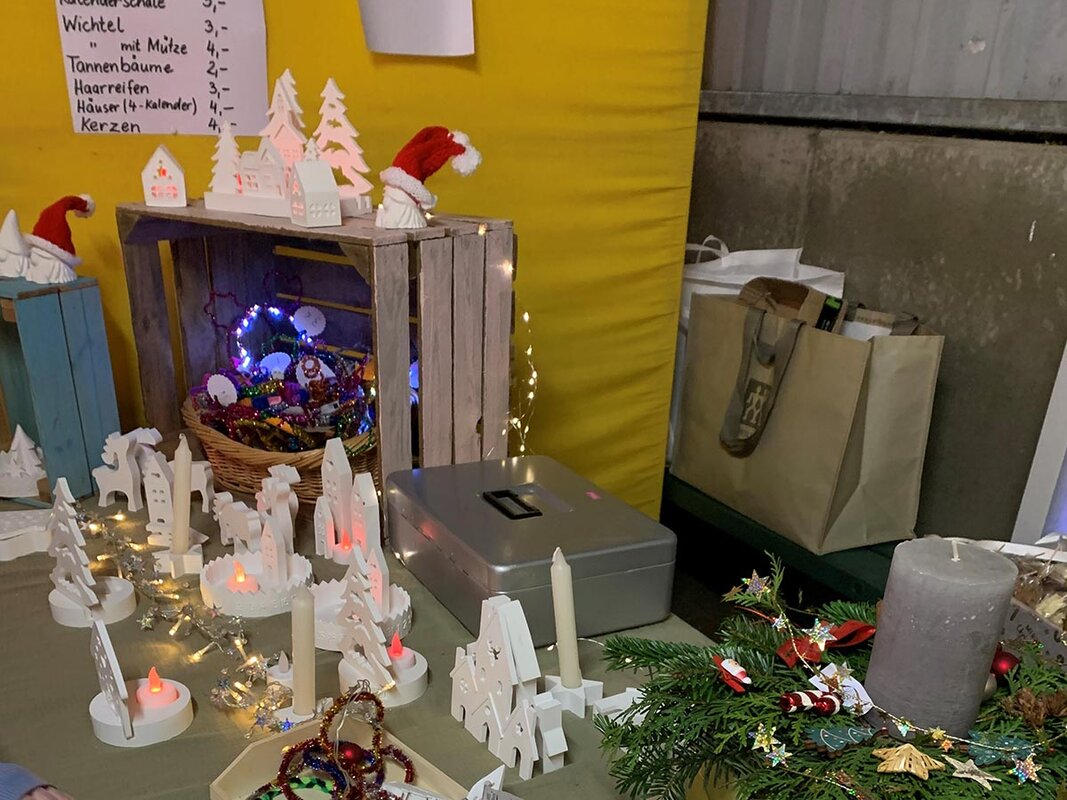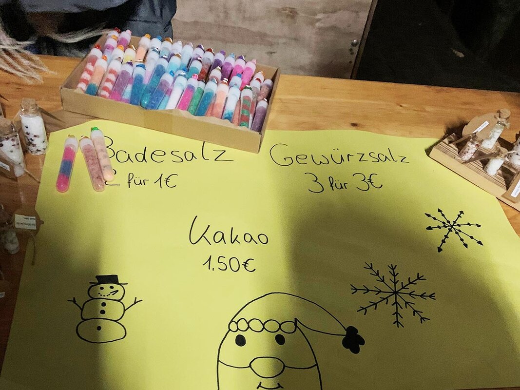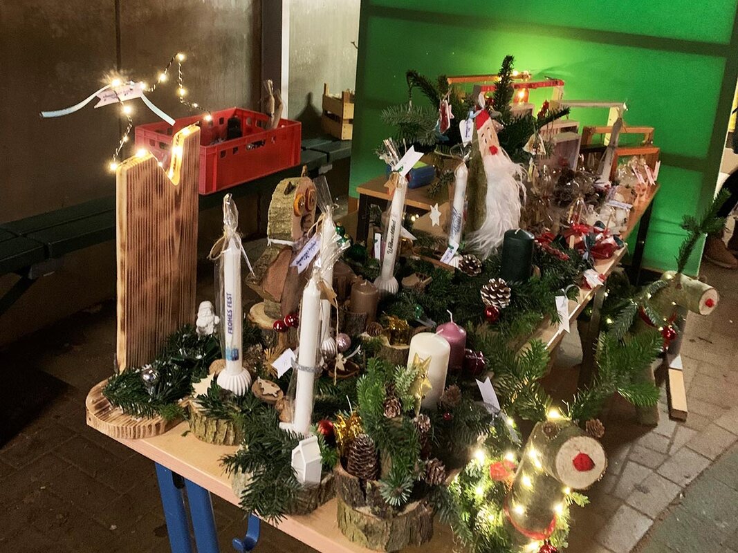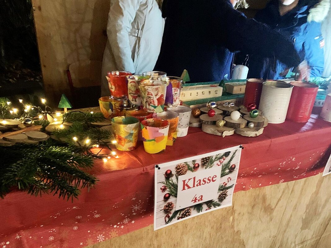 Bereits ab 16:00 Uhr herrschte auf dem Schulhof reges Treiben. Viele engagierte Helfer*innen – vor allem Eltern – unterstützten den Aufbau der Stände und wuselten wie fleißige Ameisen über das Gelände. Jeder Stand präsentierte sich auf ganz eigene Weise: liebevoll gestaltete Weihnachtsdekorationen, handgemachte Geschenkideen, duftende Badesalze und viele weitere kreative Überraschungen warteten auf die Besucherinnen und Besucher.
